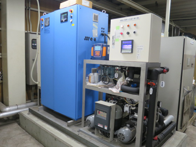 原水が止まった場合、原料が無くなった場合、その他電解状態が異常になった場合は警報を出し状態を表示して停止します。