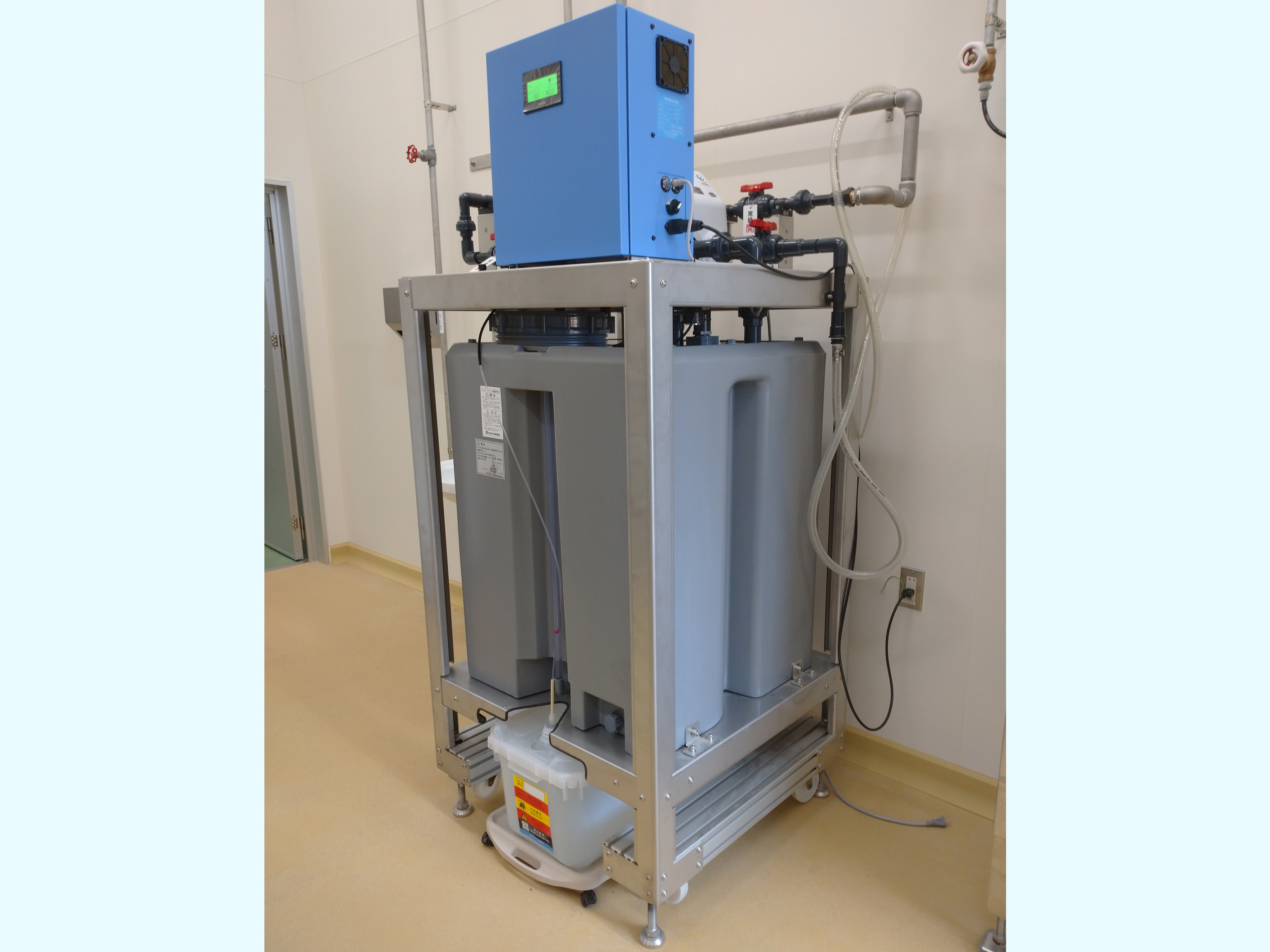 電解水用のタンクと水位センサーを付加すると、電解水の使用に応じて自動的に生成補給します。