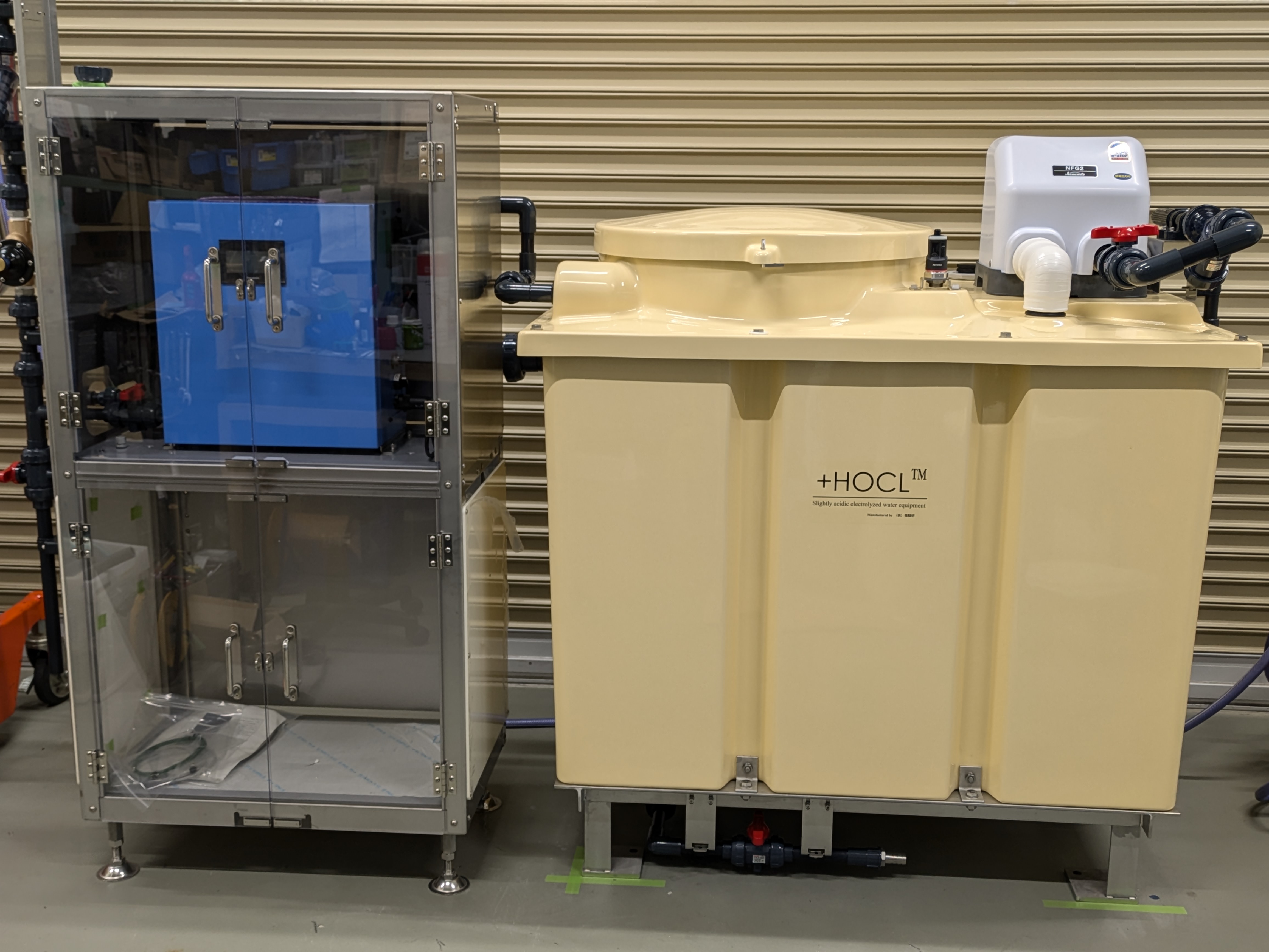 - 原料消費 300ml/h(有効塩素濃度 15-20ppm)